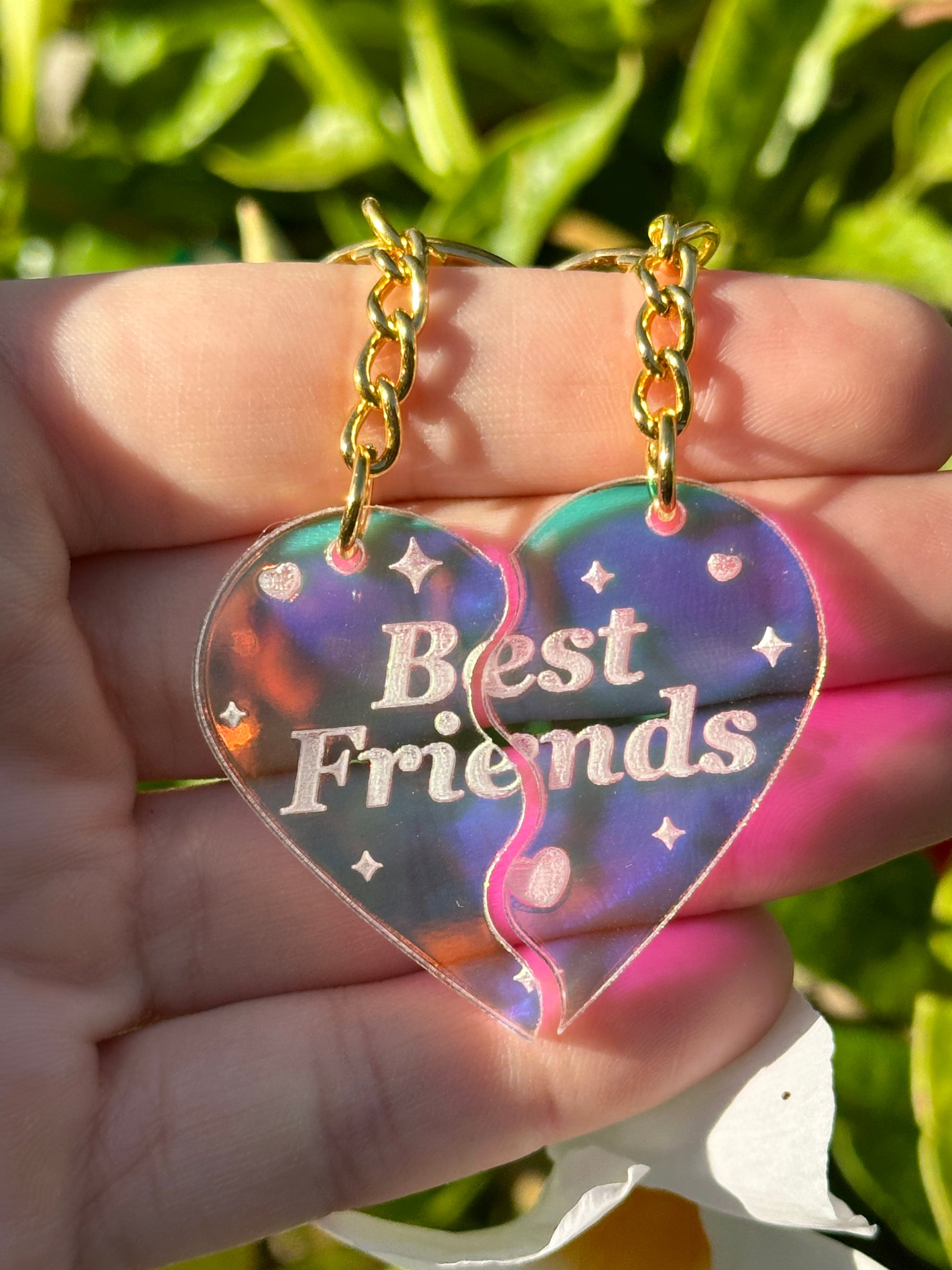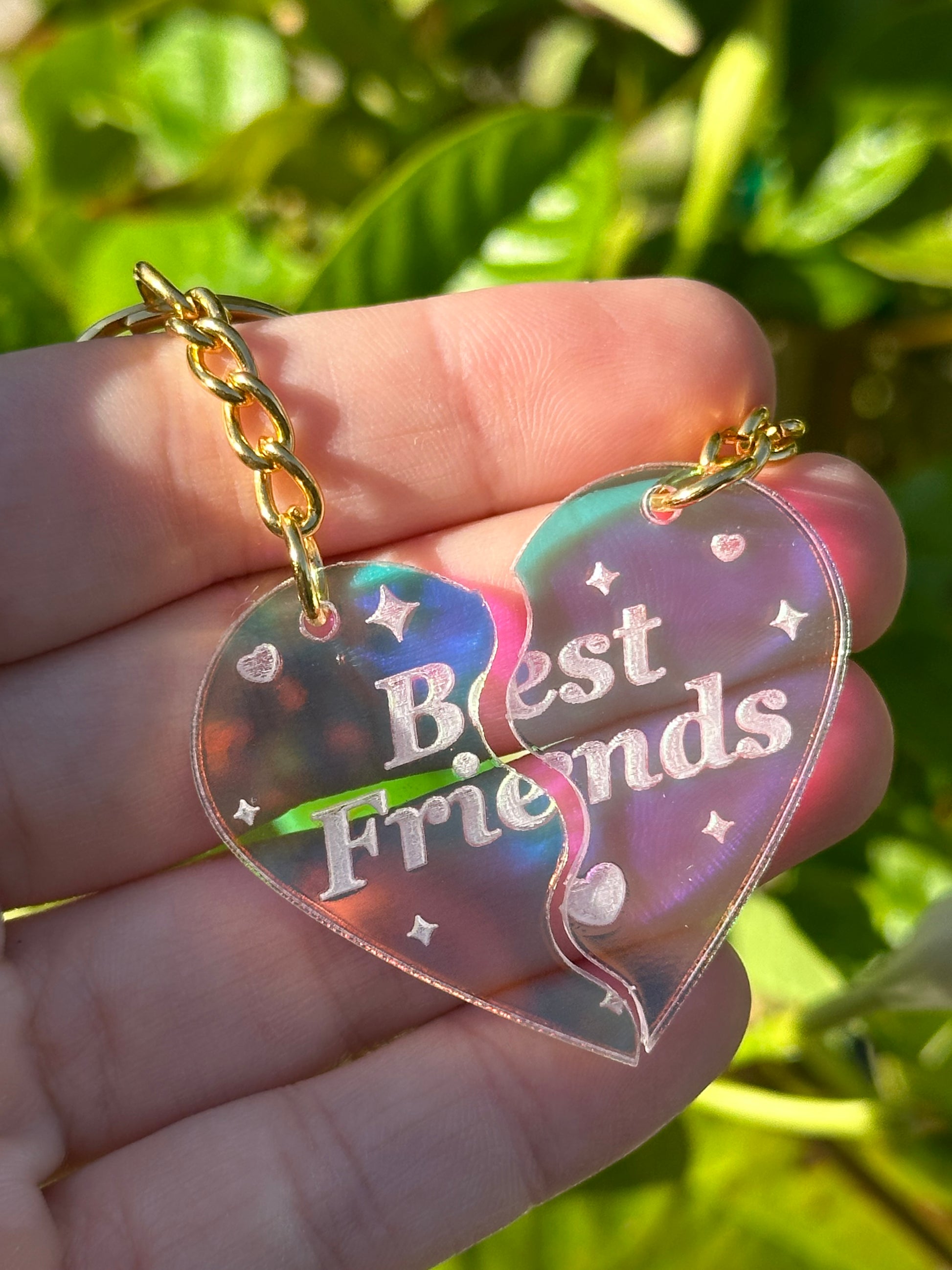 Best Friends Broken Heart Iridescent Acrylic Keychain