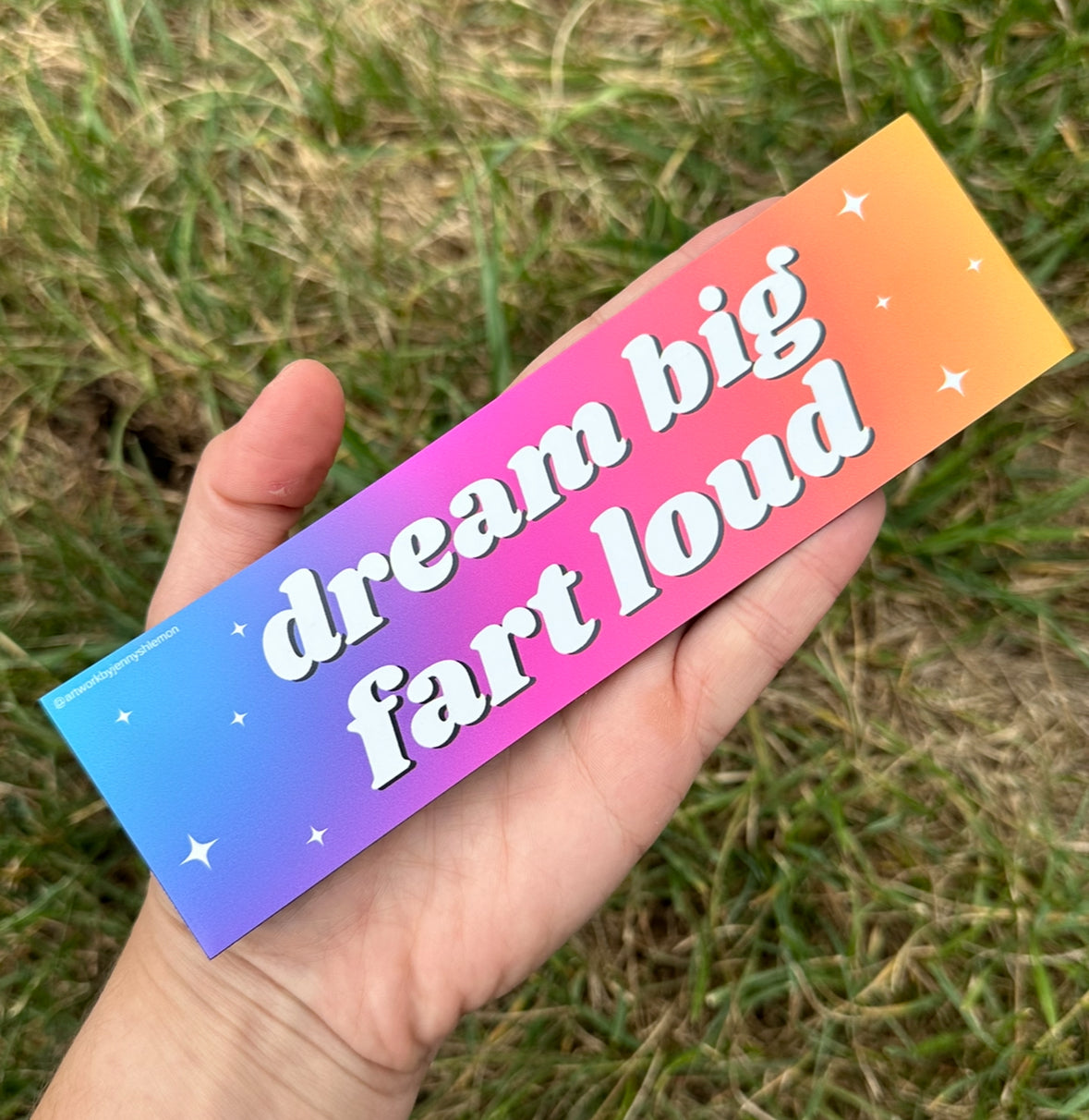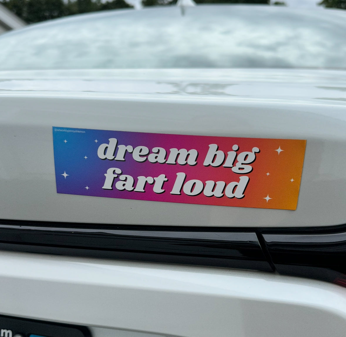 These magnets are: 7 inches long and about 2 inches in height. They are designed by me featuring a funny quote and phrase and a fun background. You can put them on your car bumper, fridge or anything a magnet can stick on. The printed surface does GREAT in rain, snow and the sun. My own magnets have withstanded the midwest blizzards, snow, rain and sunshine!