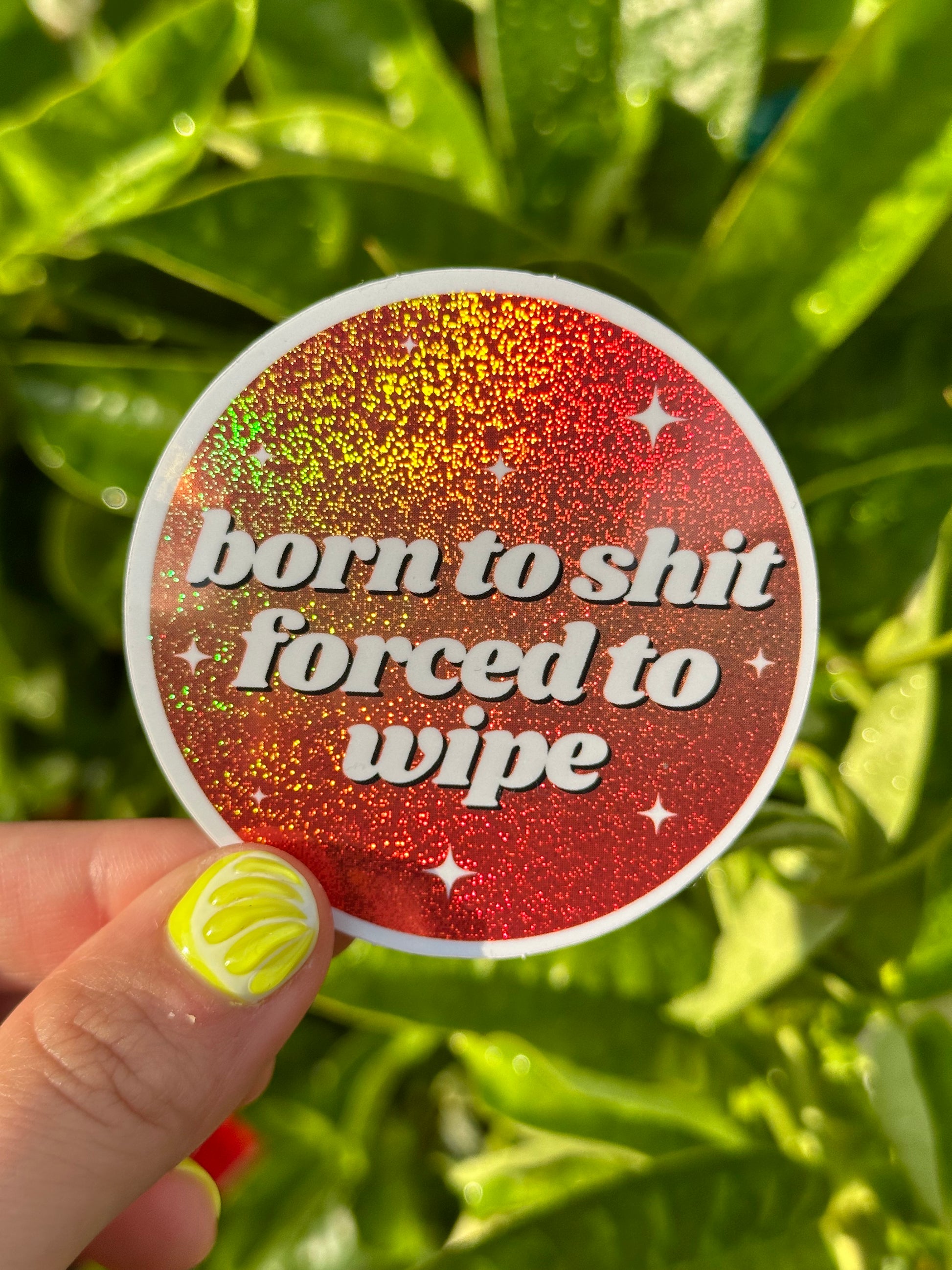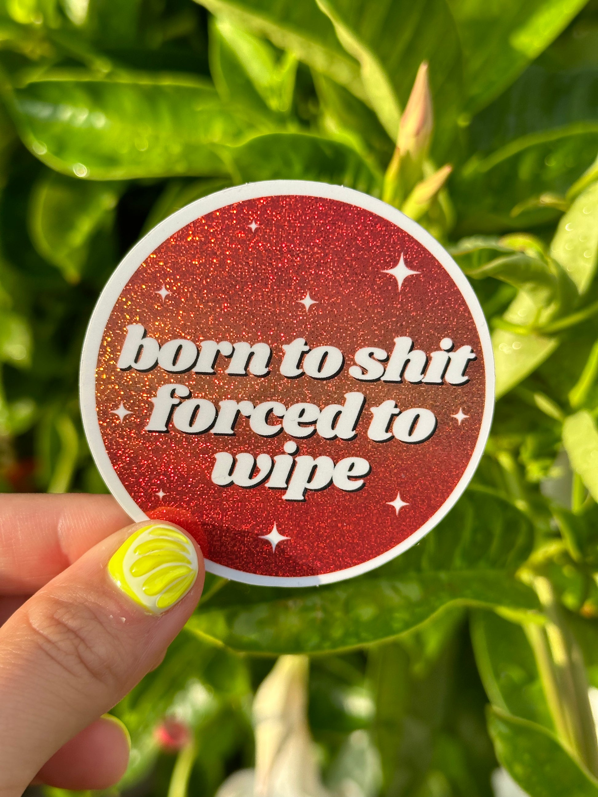 Born To Shit Forced To Wipe Glittery Circle Sticker