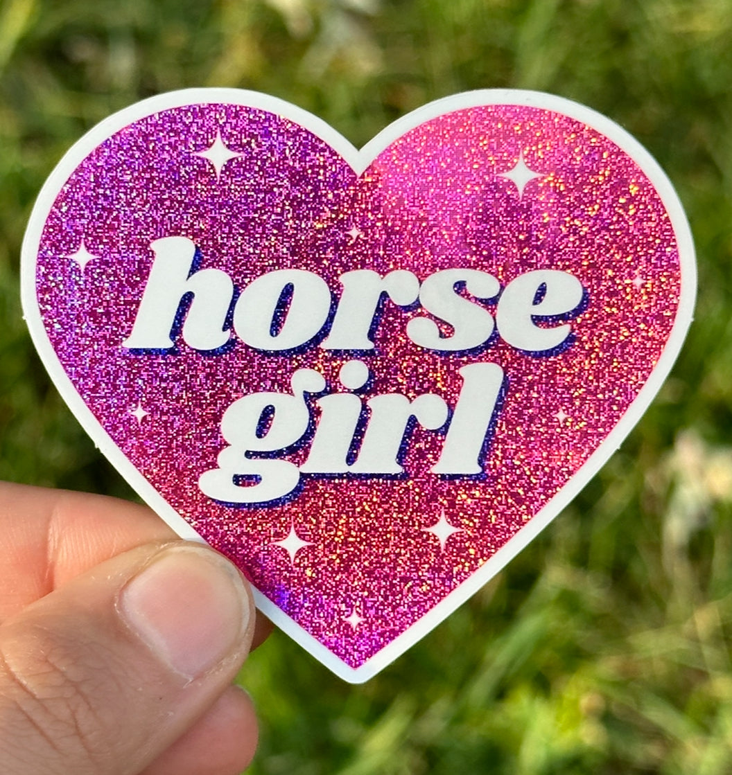 Horse Girl Glittery Heart Sticker