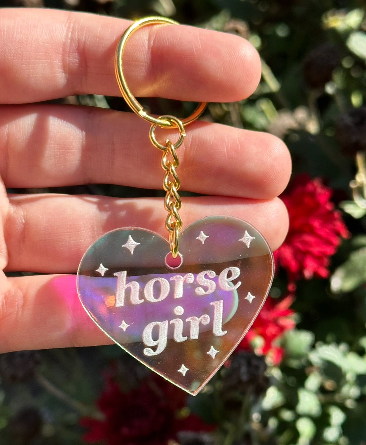 It is made with my laser in iridescent acrylic which is a pretty colorshift that is slightly translucent. It’s super lightweight and very adorable.