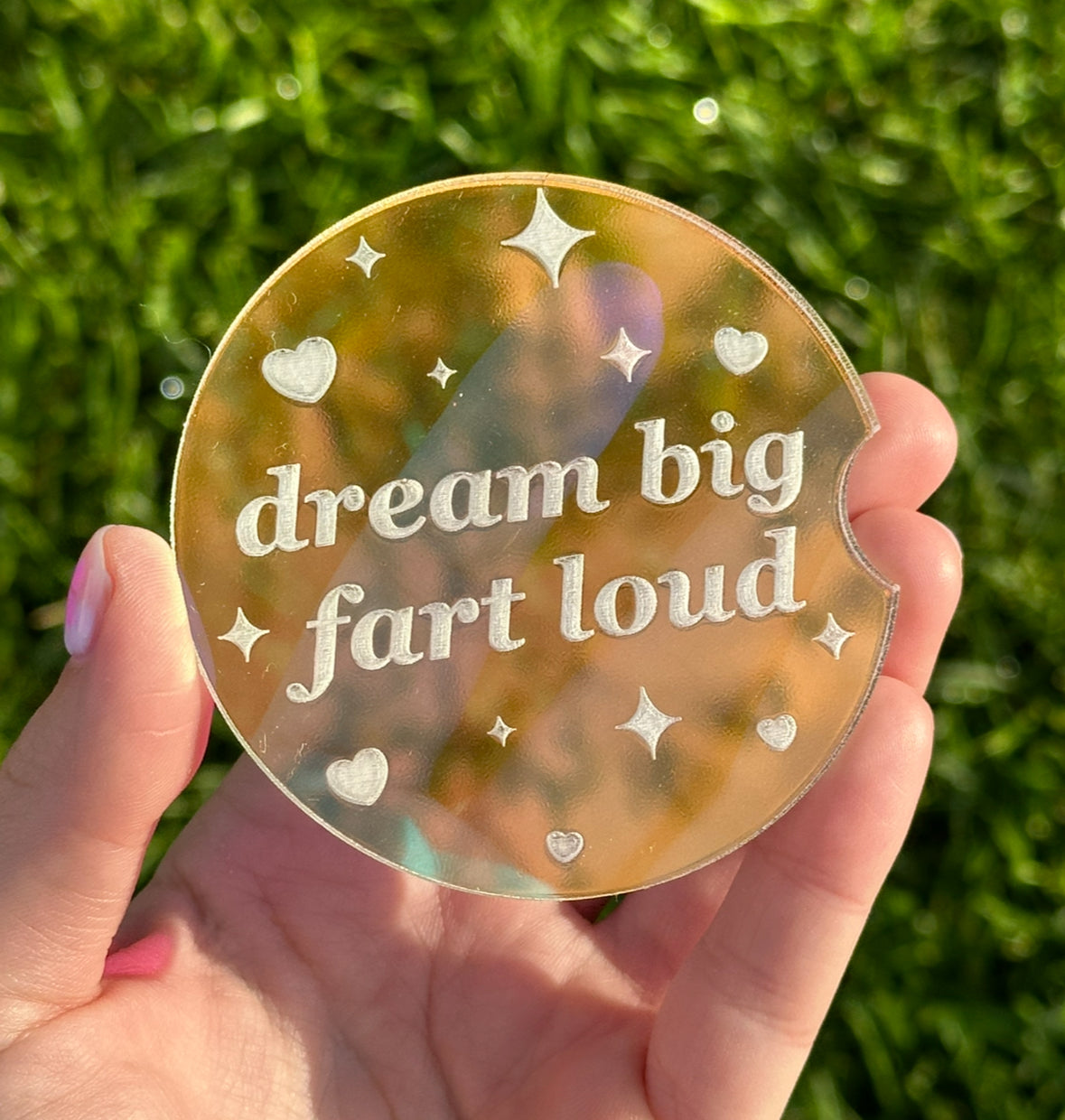 Individual 3 Inch Iridescent Car Coaster - Dream Big Fart Loud