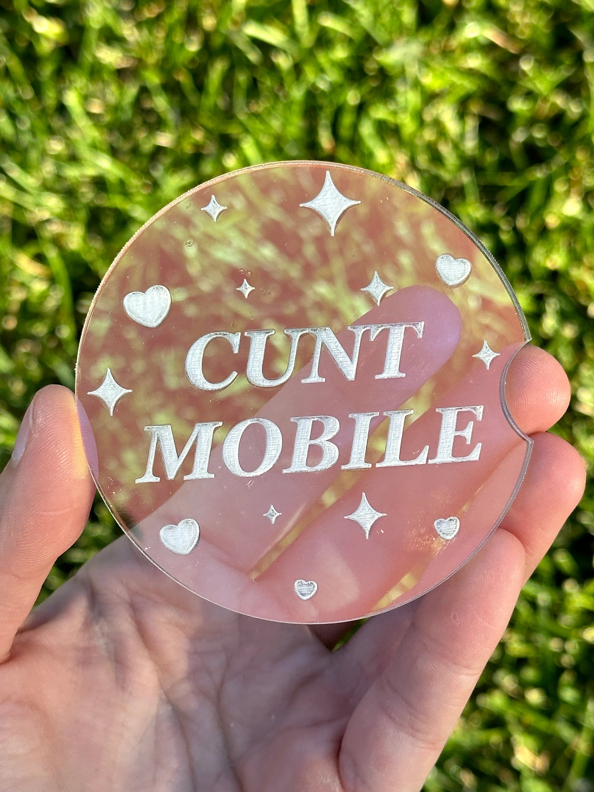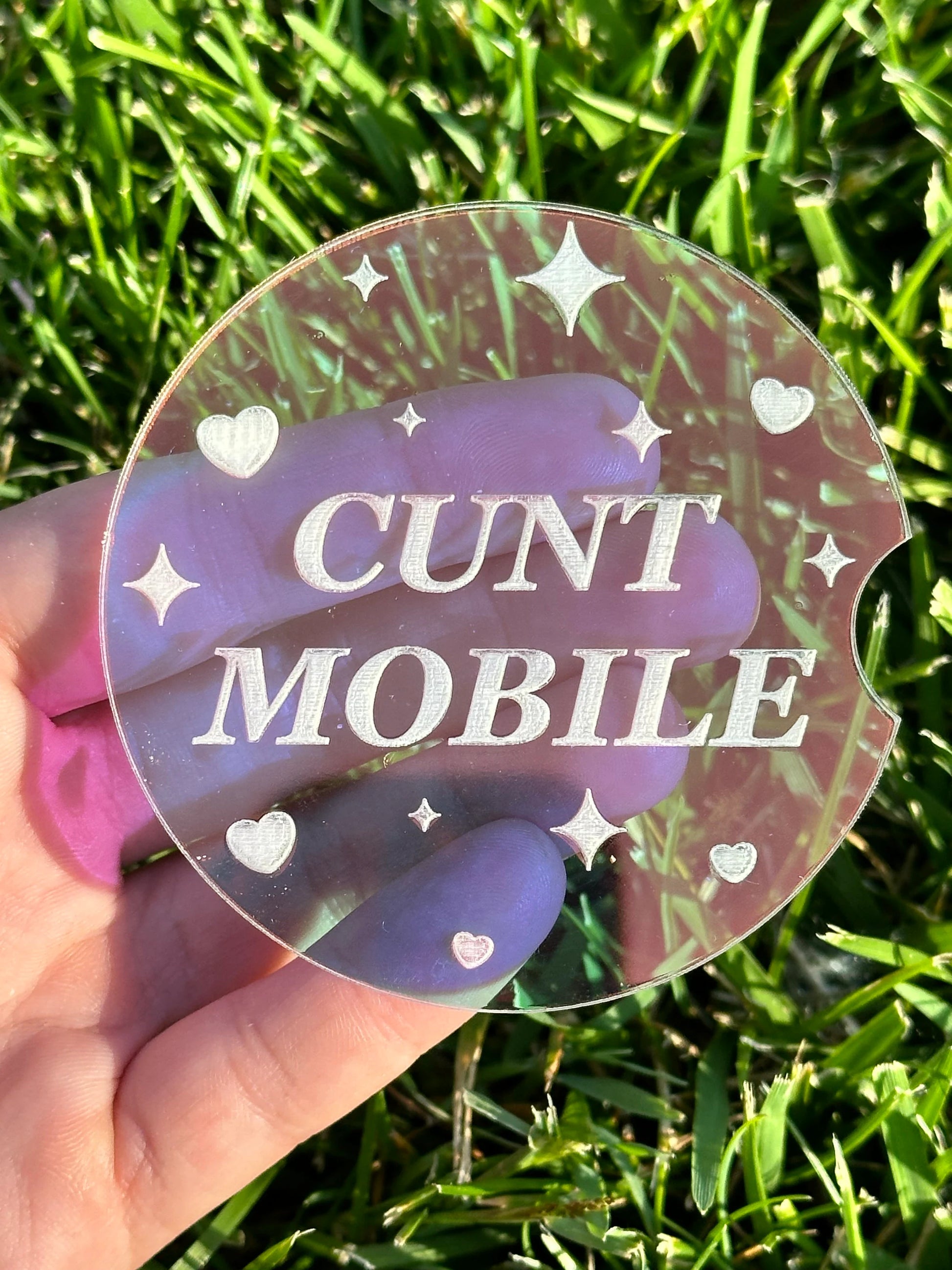 Individual 3 Inch Iridescent Car Coaster - Cunt Mobile