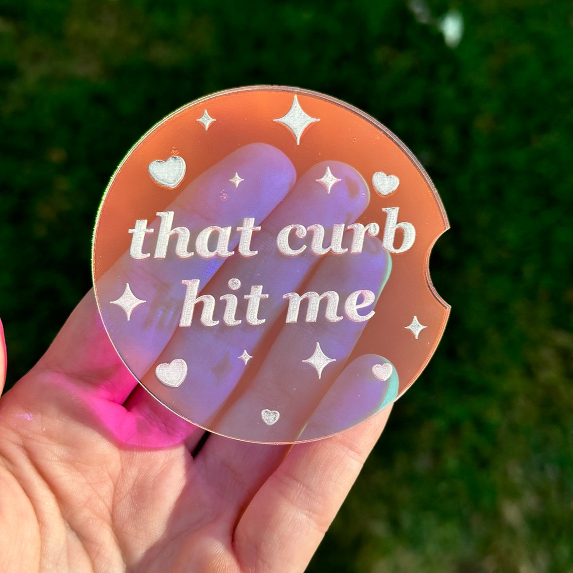 Individual 3 Inch Iridescent Car Coaster - That Curb Hit Me