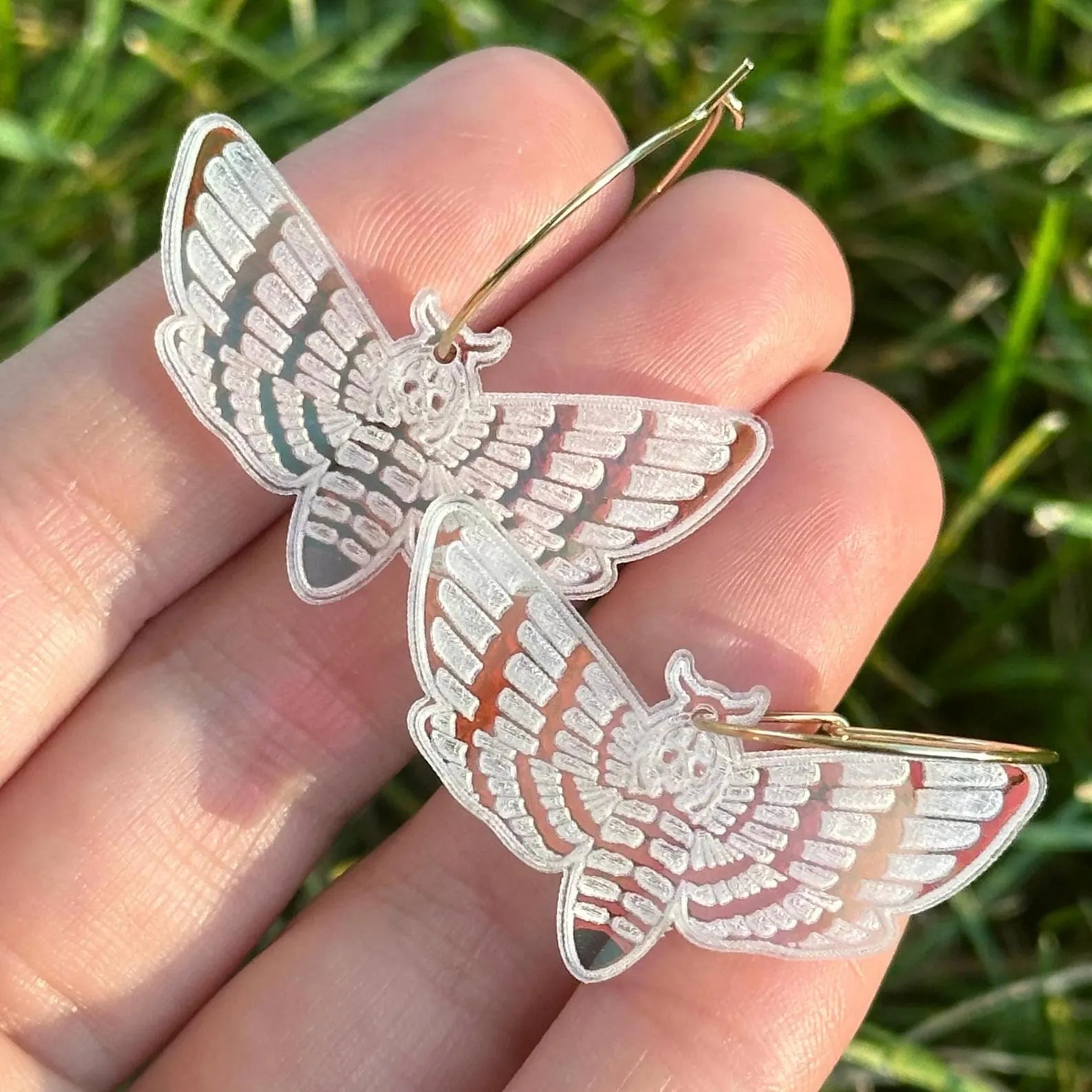 Iridescent Dainty Size Death’s Head Hawkmoth Hoop Earrings