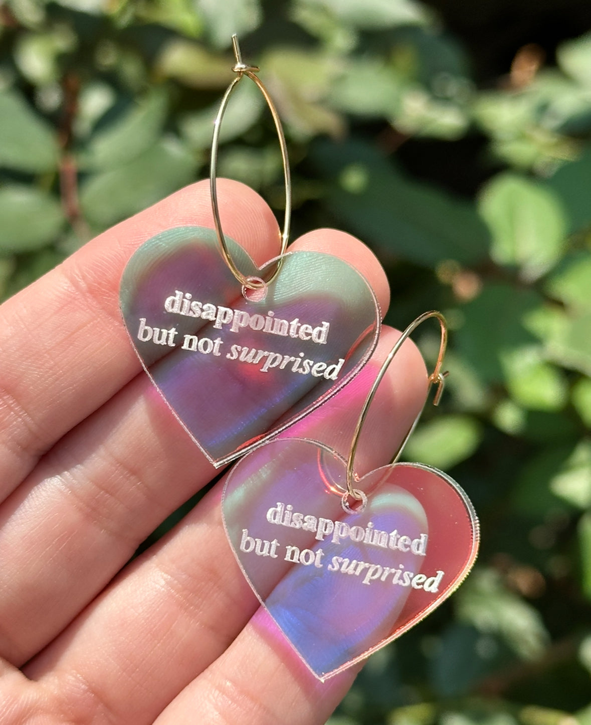 Iridescent Disappointed but Not Surprised Heart Hoop Earrings