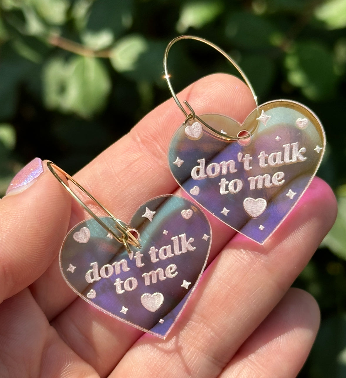 Iridescent Don’t Talk To Me Heart Hoop Earrings