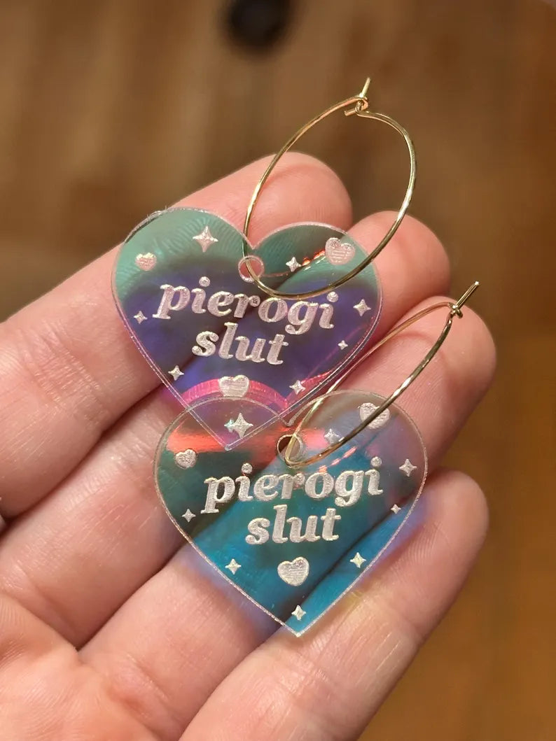 Iridescent Pierogi Slut Heart Hoop Earrings