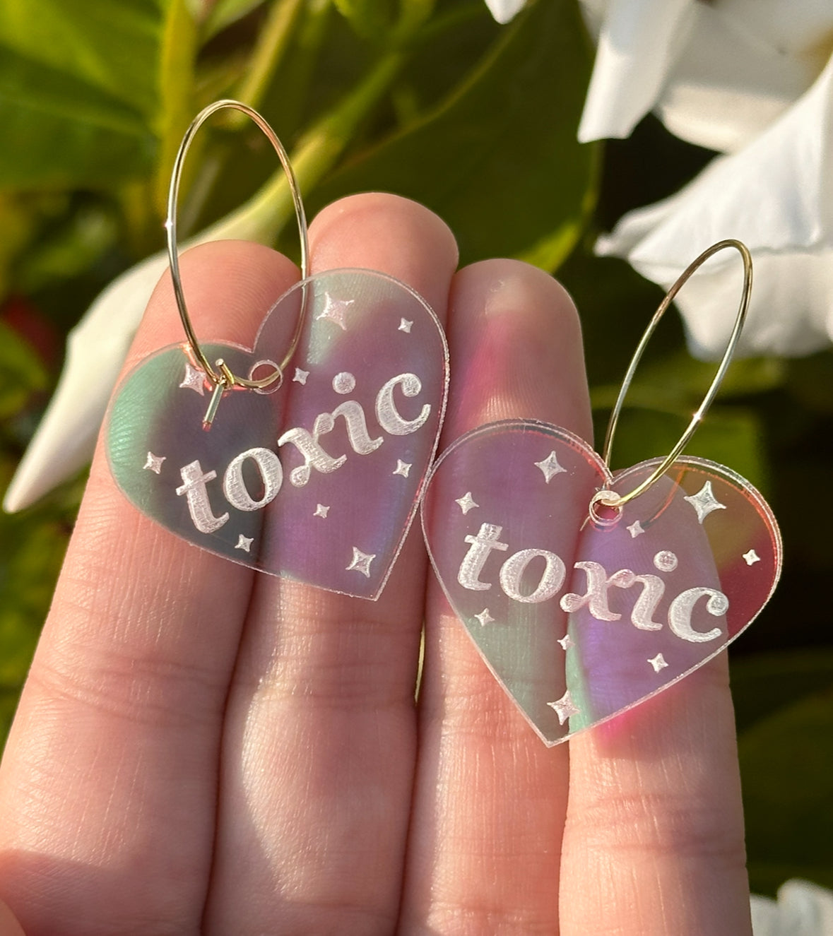 These are colorful earrings made with iridescent acrylic. The iridescent is colorshifiing and a bit translucent.