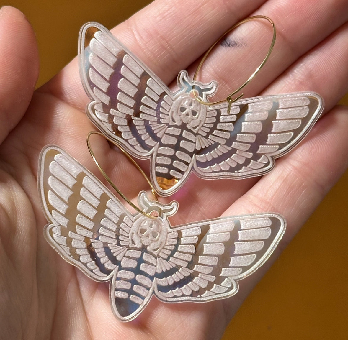 Iridescent Death’s Head Hawkmoth Hoop Earrings