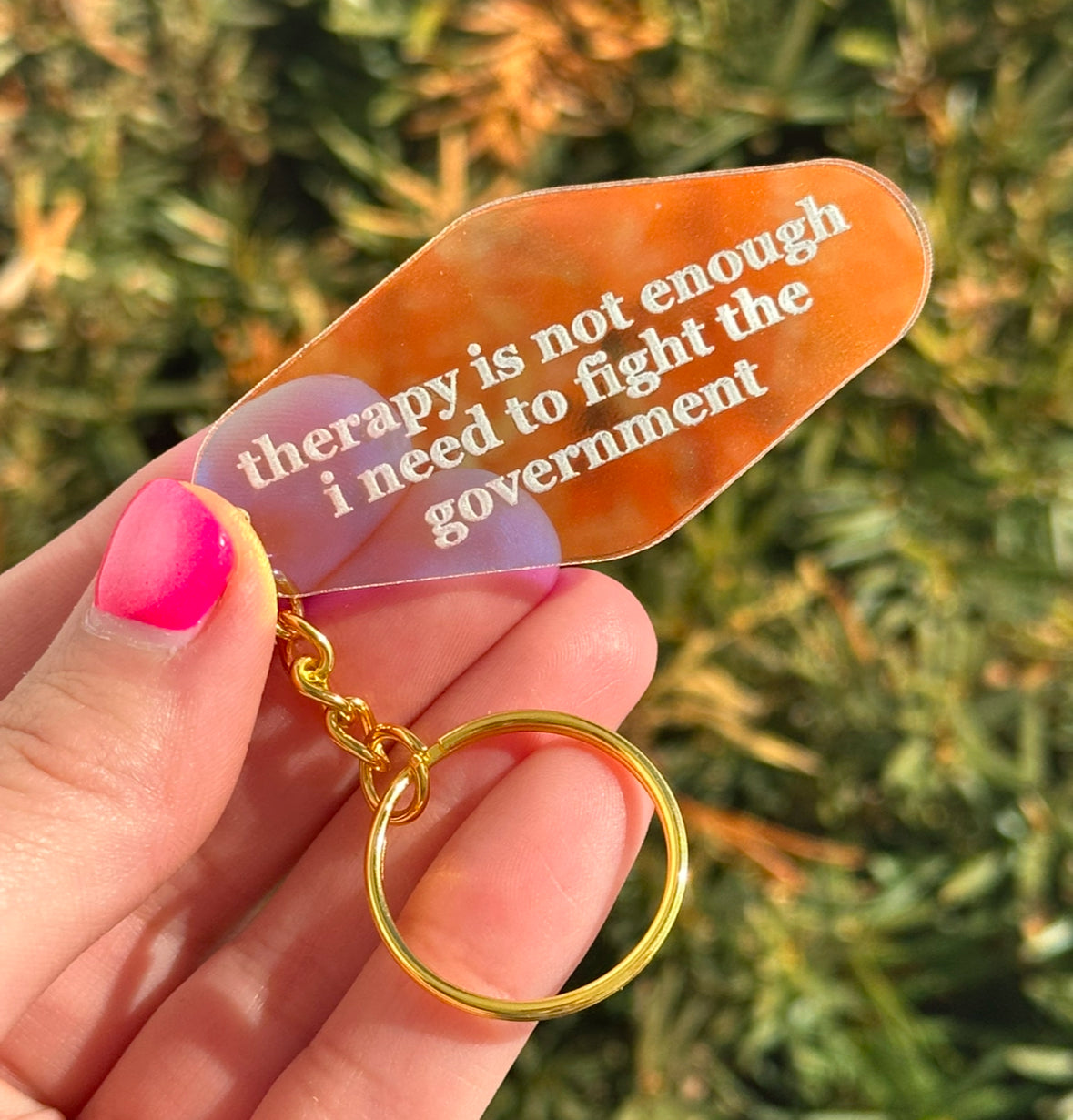 Therapy Is Not Enough I Need To Fight The Government Iridescent Acrylic Motel Keychain